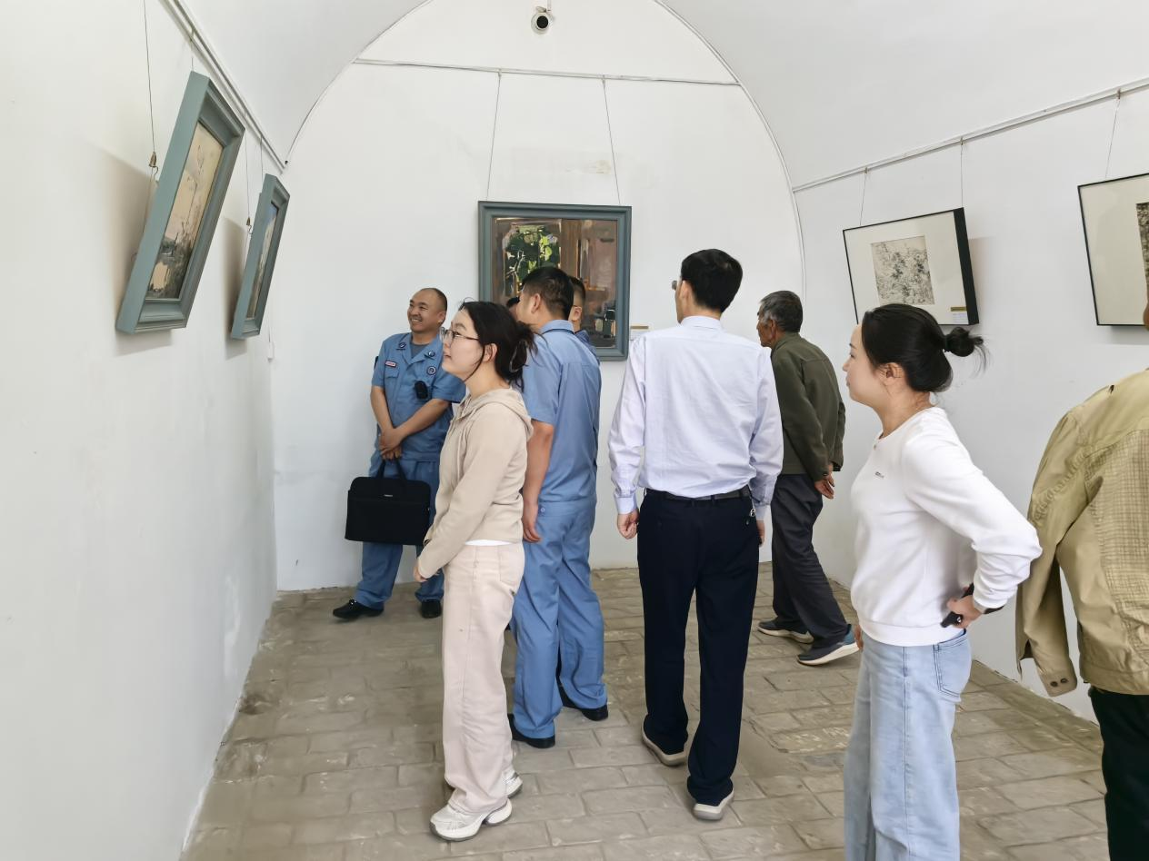 观众在窑洞里看画展。