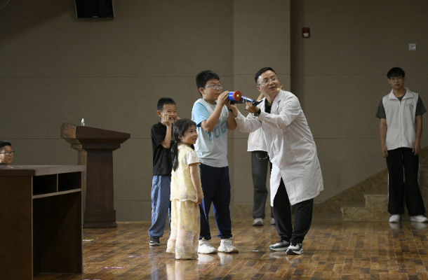 “轰”,一颗透明“炮弹”从发射装置上喷射而出,孩子们惊讶的欢呼声充满整个空间。6月7日,吕梁学院物理系格物实验室团队在吕梁市图书馆开展科普活动,将红色故事与科学实验巧妙融合,为百余名中小学生带来了一场视觉与知识的盛宴。