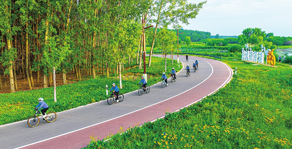 8月15日,长治市潞州区堠北庄街道张祖村,骑行爱好者在太行一号旅游公路长治段骑行,享受运动快乐。近年来,当地加大漳泽湖生态修复与保护综合治理,构建水城共融城市空间新格局,不断提升市民获得感、幸福感。
