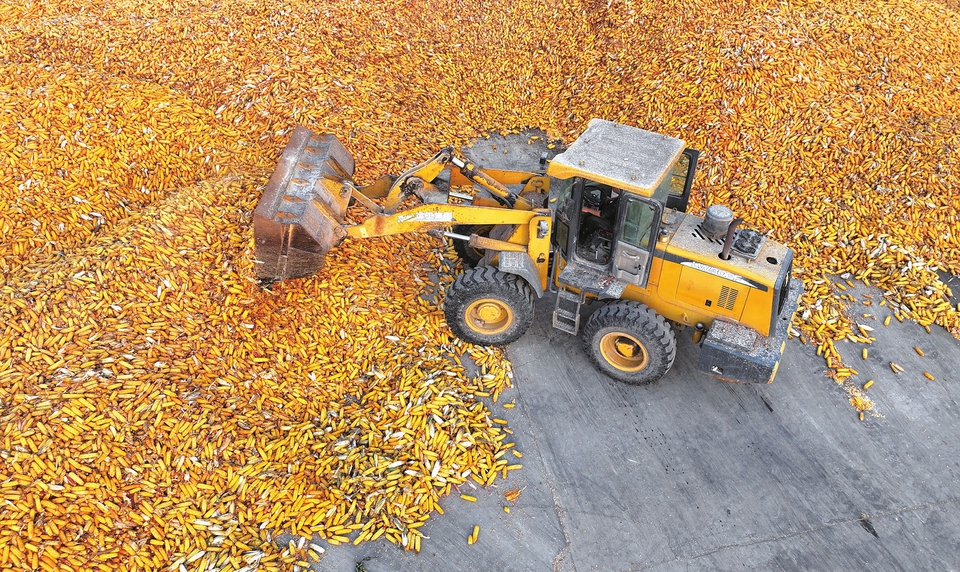 10月13日,稷山县稷峰镇杨赵村村民加紧抢收抢烘玉米。针对此次连阴雨天气,该县积极组织农技人员深入田间开展技术服务,调度农机加紧抢收,同时协调粮食烘干设备全天候运转。栗卢建摄