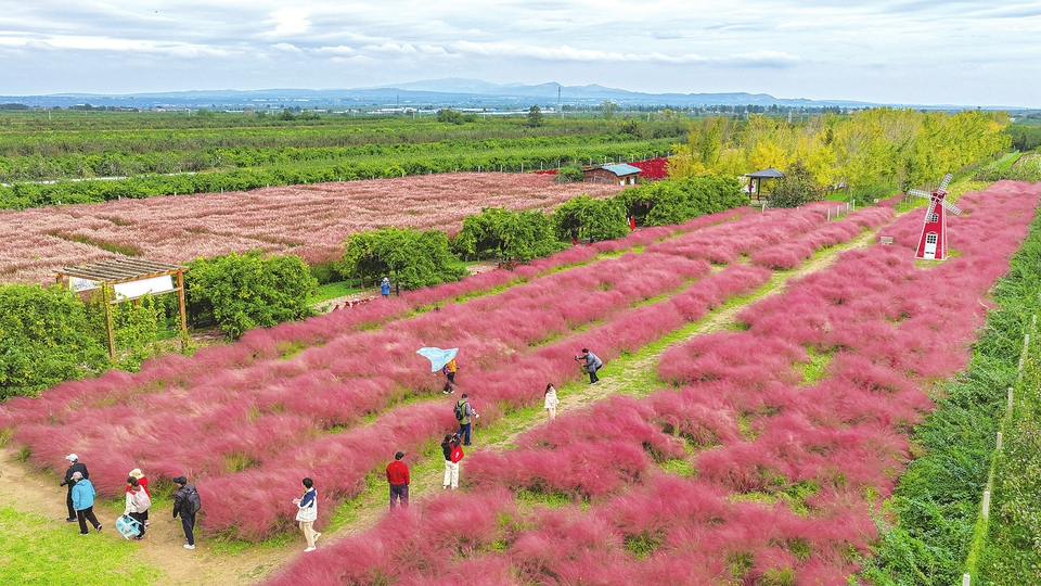 10月18日,秋意正浓,游客在临猗县三管镇银杏源家庭农场游玩。近年来,三管镇大力发展乡村旅游,吸引众多游客前来感受乡村魅力。