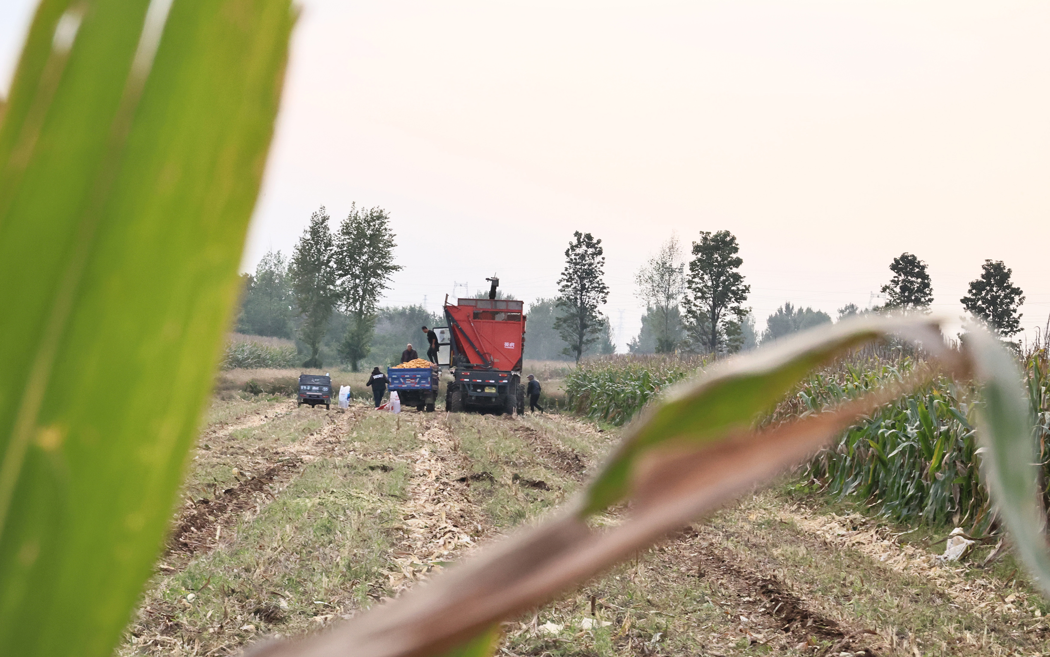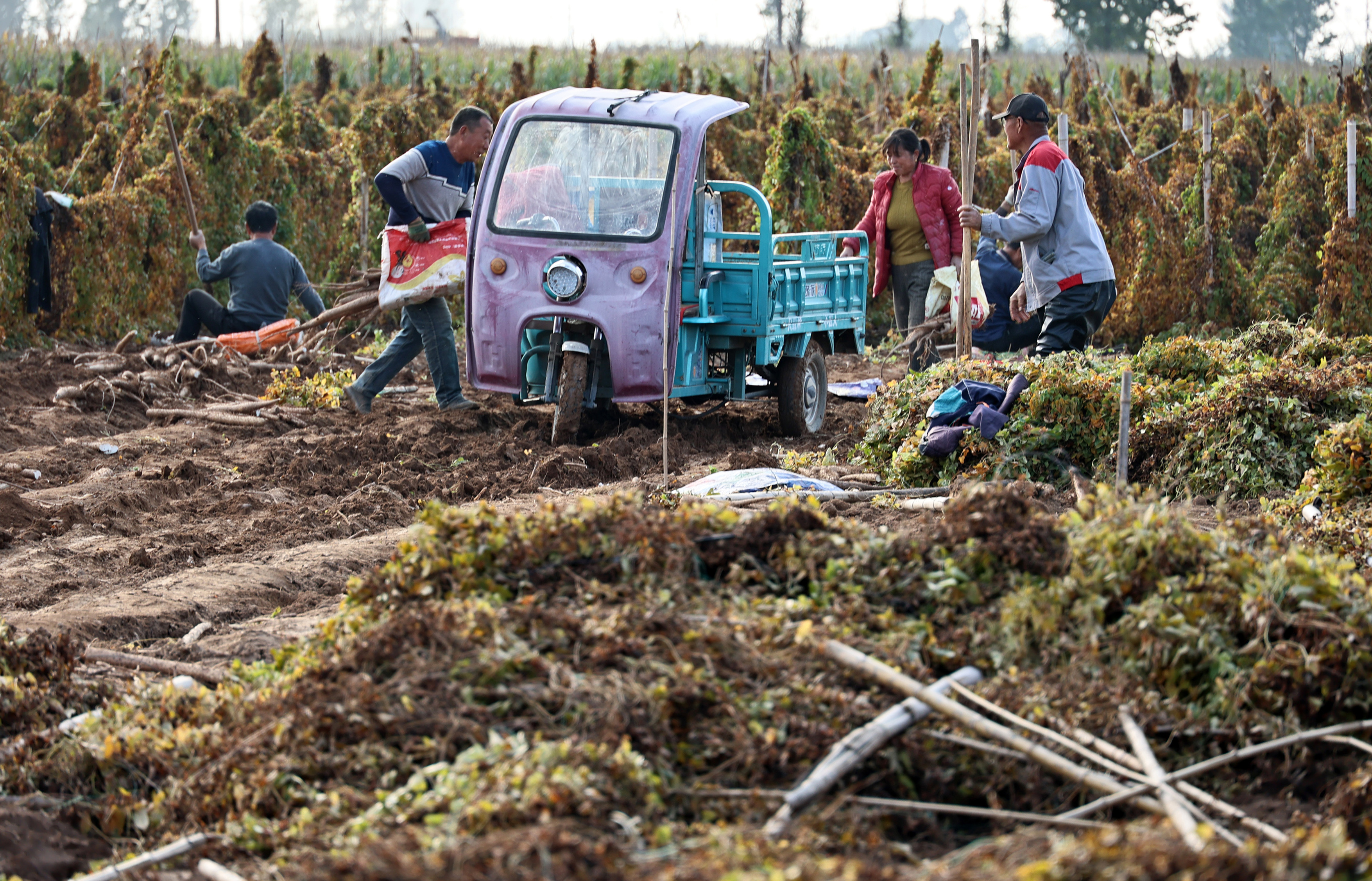 10月21日,在山西省运城市新绛县的田间地头,村民们紧锣密鼓地抢收抢运、晾晒销售,一派繁忙景象。(高新生)