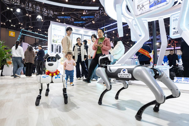 展区中心,掌声阵阵,赞叹连连。一只机器狗稳健完成高难度后空翻动作,动作精准、一气呵成,成为全场焦点。“从底层编程到核心芯片,全部实现自主可控。”山西星辰云图智能科技有限公司产品经理雄伟语气坚定地介绍。该公司通过持续技术攻关,在智能传感器、操作系统等前沿领域构筑起坚实的技术护城河,其清洁机器人、自动巡逻车、工业机械臂等产品已广泛应用于多个行业。