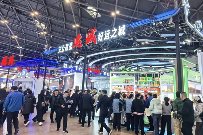 运城展厅以“七彩盐湖”为主轴,工业制造、绝技绝活、非遗文化、农业“三新”技术四大展区环抱布局。入口处,“关公大宴”系列面点、“王万保”苹果、垣曲炒粸、临猗黄河大闸蟹等运城本地美食香气交融,吸引众多参观者驻足品鉴,率先体验河东大地的物产之丰与匠心之醇。