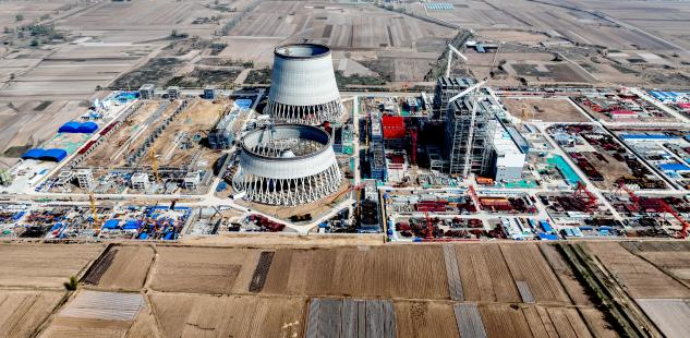 在晋北基地同热三期2×100万千瓦煤电工程项目建设现场,工人们全力冲刺年度目标,预计2026年底并网发电后,年发电量约92亿千瓦时。