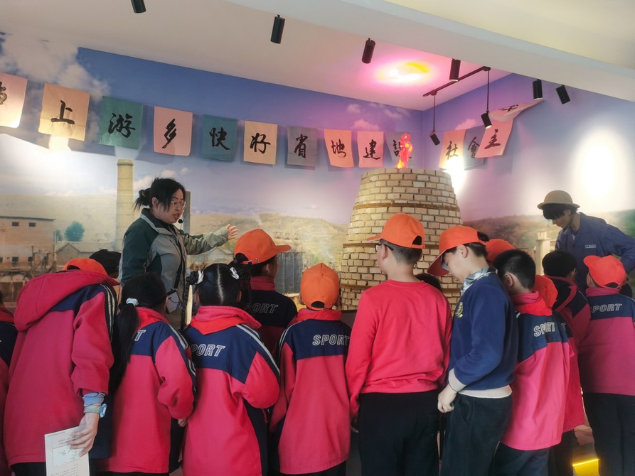 小学生研学团队在应朝钢铁厂展厅参观。李卫彬摄