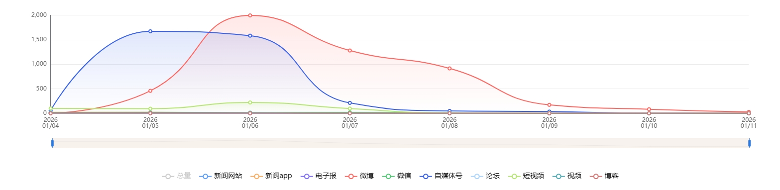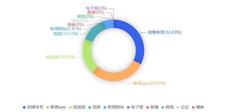 截至目前,该文章在互联网上传播总量共9236篇。各信源的信息发布情况中,微博占比最高,其次是自媒体号。(数据来源:新华睿思数据云图分析平台)