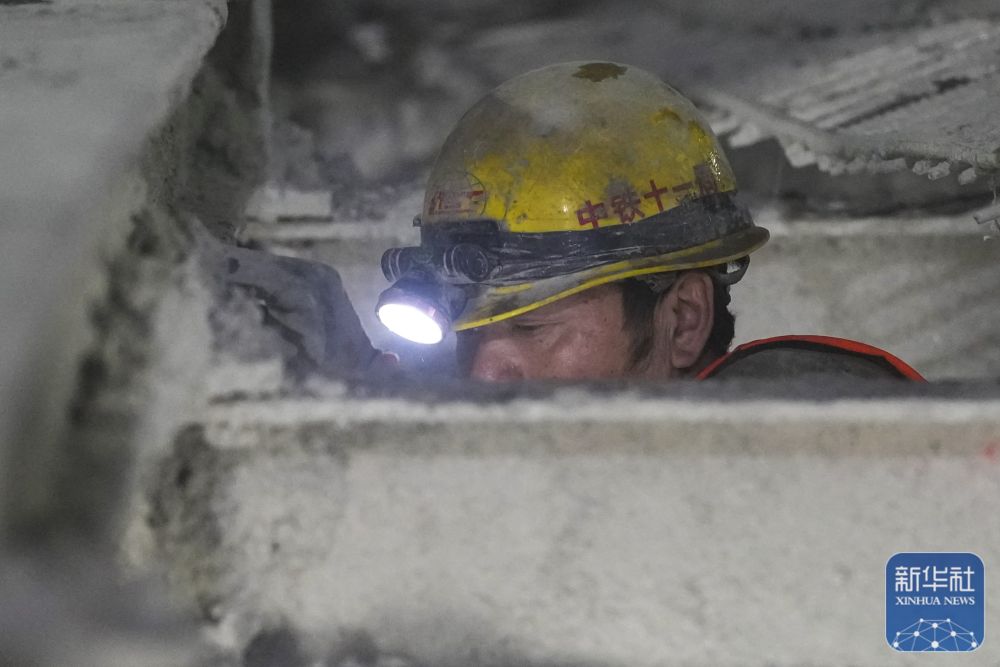 1月12日,中铁十一局集团有限公司的工作人员在雄忻高铁北太行山隧道内施工作业。