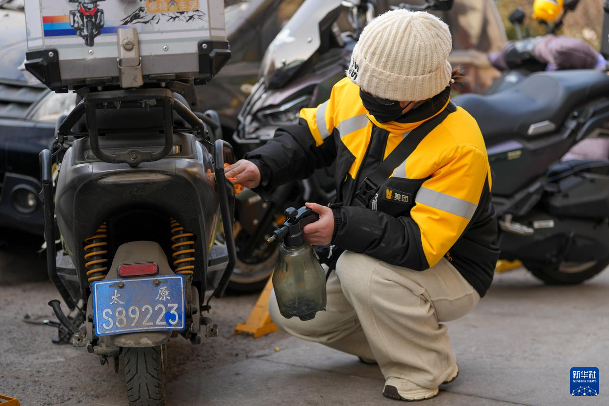 外出配送前,戚德敏清洁电动车(1月29日摄)。新华社记者 杨晨光 摄