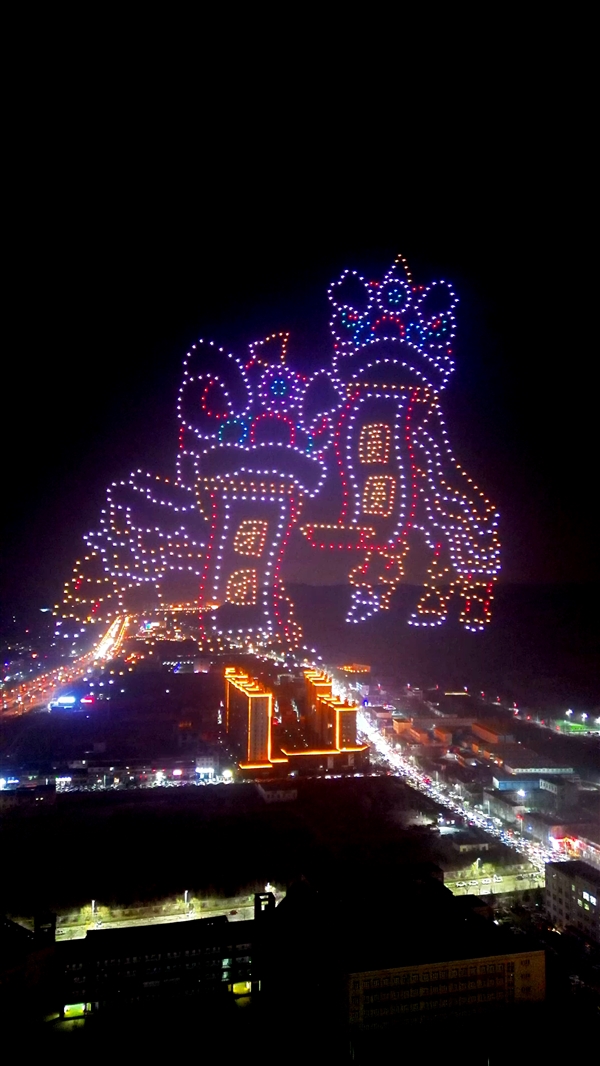 据灵石县文化旅游投资发展有限公司演艺部部长宋晋鹏介绍,此次无人机表演经过多轮策划调试,采用高精度定位与智能编程技术,确保每一架无人机飞行轨迹精准无误。