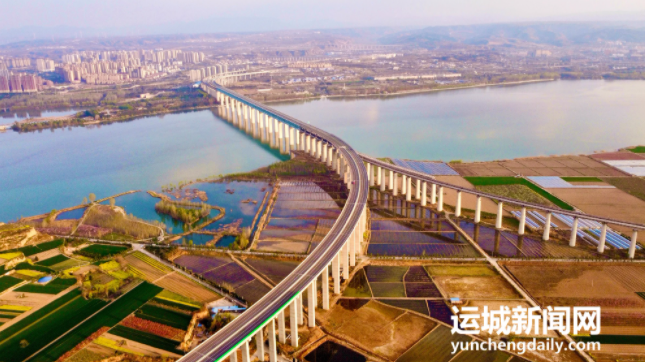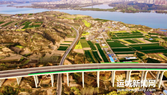 大桥凌空飞架,横跨晋豫两省,与沿岸田园风光、生态廊道交相辉映,构成一幅壮美的春日画卷。(特约摄影 范嘉更 摄)