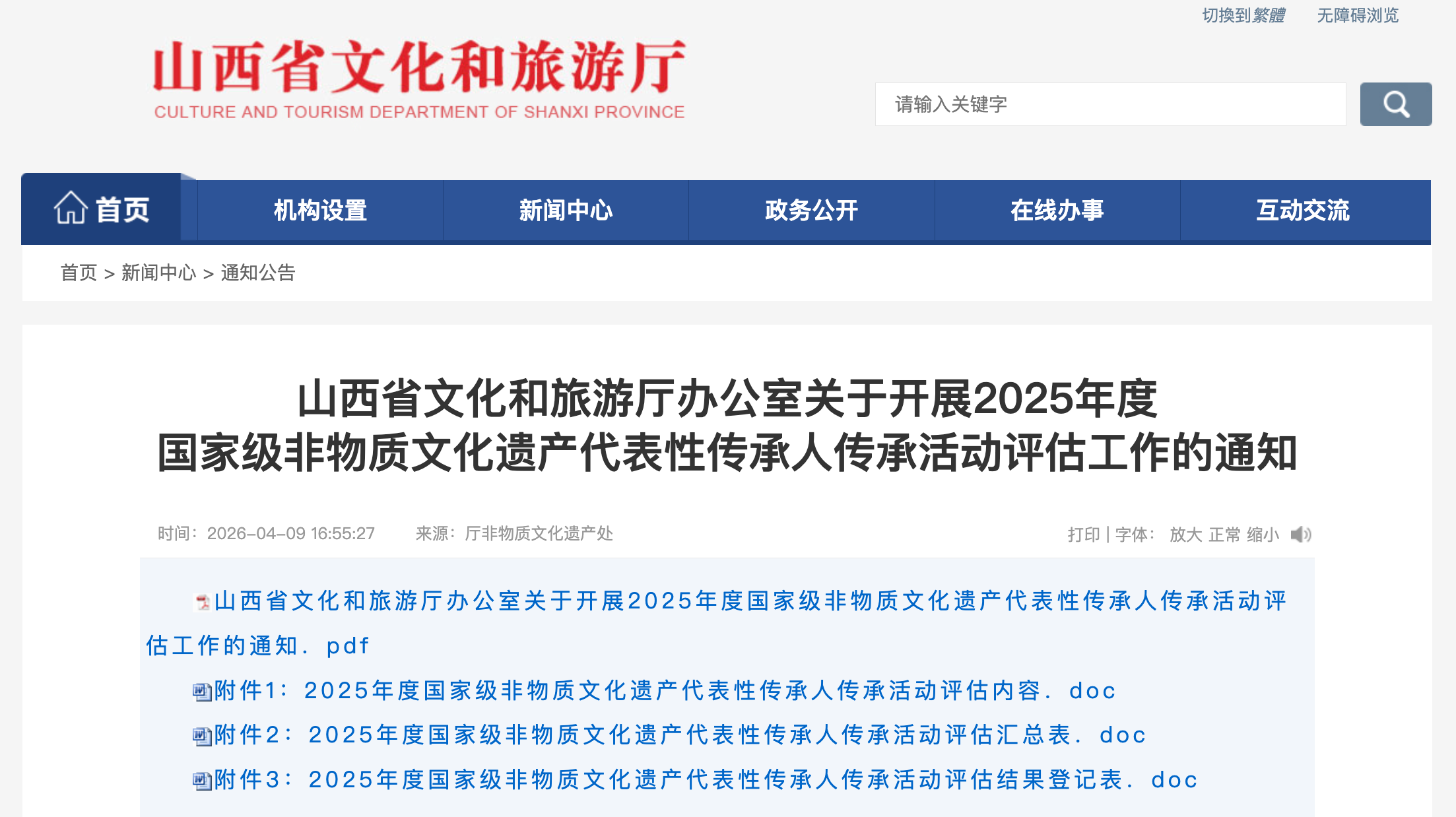 近日,山西省文化和旅游厅发布通知:正式启动2025年度国家级非物质文化遗产代表性传承人传承活动评估工作。