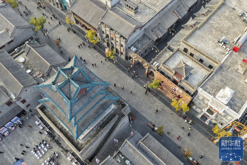 "游客在忻州古城内拍照留念(10月21日摄)。"