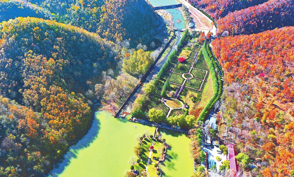 "原标题:斑斓彩墨绘深秋11月1日,时至深秋,垣曲县望仙大峡谷内,碧绿的湖水与满山红叶相映衬,勾勒出一幅五彩斑斓的山水画卷。"