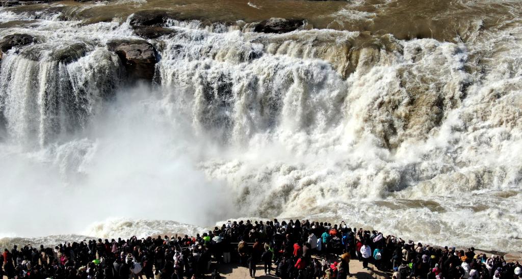 2月19日,山西吉县壶口瀑布景区游客超2万人,迎来春节旅游高峰。
