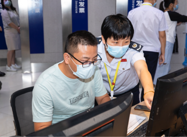 税务部门工作人员指导纳税人完成涉税事项办理。