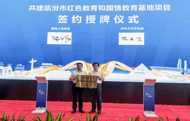 推介会现场,临汾市与深圳大学签订了校地共建红色教育基地、国情教育基地协议。双方将充分利用临汾市优质的红色教育和国情教育资源,吸引山西省内外高校师生到临汾开展研学和社会实践活动,进一步促进人才培养,实现市校共同发展。
