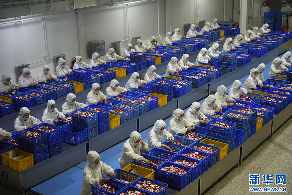 平遥牛肉集团生产车间。新华网发 (冀古陶 摄)