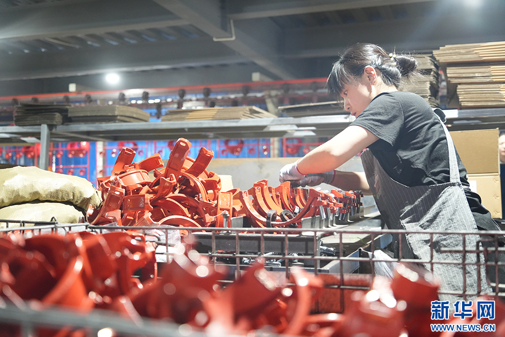 卡耐夫集团(山西)管道系统有限公司的工人正在整理产品。新华网发 (冀古陶 摄)