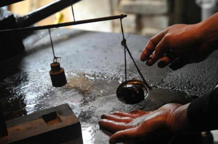 “这是一项长年累月的工序。”王刚说,炼烟时间的长短,收得烟灰的多少,决定着一年里制作绛墨的数量,一般燃烧5公斤桐油可收10钱烟灰,收够大约1.5公斤烟灰就可以制作一批次墨锭。