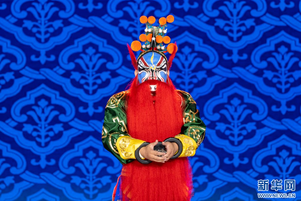 戏曲演员在后台上妆。新华网 发 (冯宇 摄)