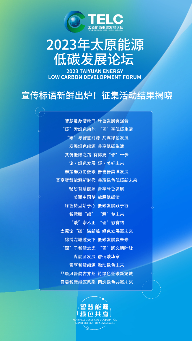 2023年太原能源低碳发展论坛(以下简称“太原论坛”)将于9月上旬举办。为提升太原论坛的影响力和传播力,7月6日至7月31日,太原论坛组委会秘书处在全国范围内公开征集了宣传标语339条。经组织评选,共有20条宣传标语将用于太原论坛的氛围营造及宣传推广。