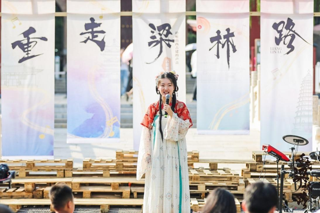 “重走梁林路”山西古建创意推介会是山西省文化和旅游厅联动晋祠景区,打造的一场轻量化的古建创意推介会。活动面向“Z世代”,以晋祠为背景,以山西古建为主角,聚焦古建之“本真”进行轻量化舞美设计,拉近古建与观众之间距离的同时,有效保护山西古建。