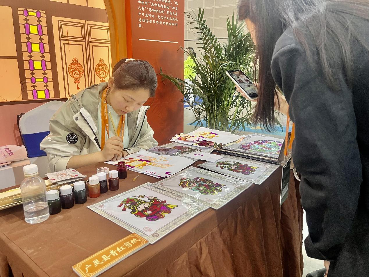 除能看的、能体验的文化展品外,大同展厅还在文博会期间策划了每天的活动,包括《千年微笑》等舞蹈表演、非遗剪纸展示、手绘地图发放等。