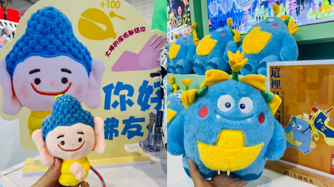 大同展厅内的“佛多多”“忘忧宝”玩偶。(侯宇馨 摄)