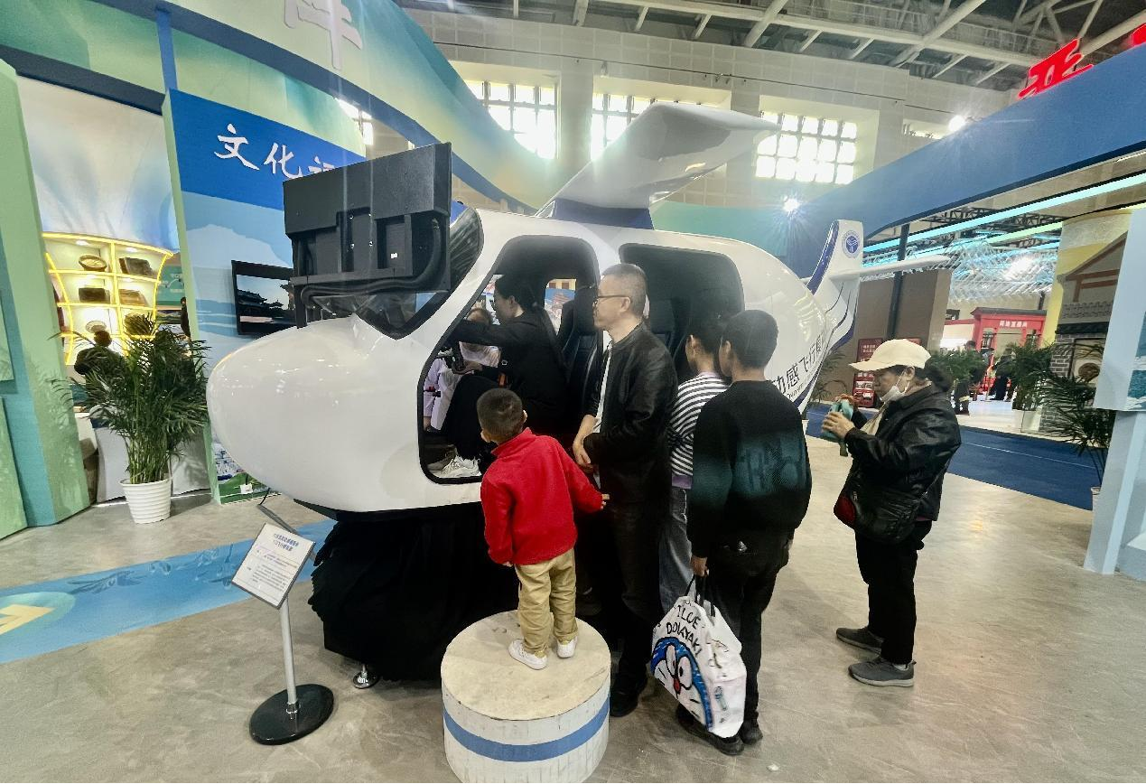 展厅内还有不少数字互动设备让人眼前一亮。来自山西通用航空职业技术学院的一台飞行模拟器便是“香饽饽”,不少小朋友争相登机、抢当“飞行员”。