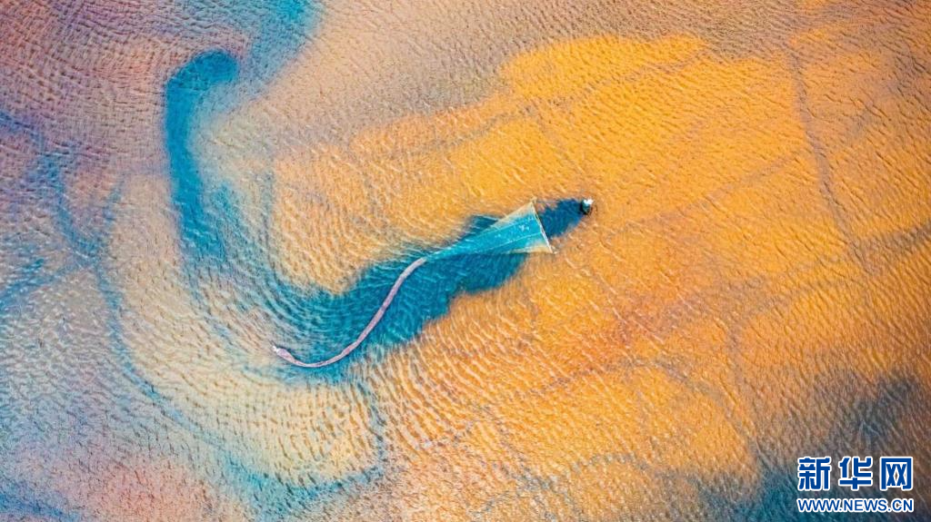 卤虫是盐湖中的天然优势物种,是鱼虾的重要饵料。职业捞虫人捞取卤虫的画面也是盐湖一景。新华网 发(赵玉祥 摄)