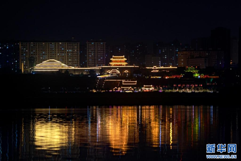 夜幕下的运城盐湖岸畔别有一番风味。新华网 发(赵玉祥 摄)