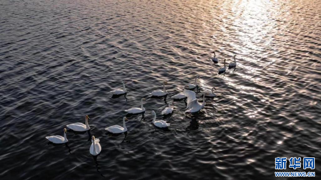 白天鹅在运城盐湖嬉戏。新华网 发(赵玉祥 摄)