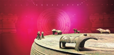 展厅中的壮族铜鼓,精巧别致,直勾起观者击打的欲望。看着这稻作文化的产物,人们仿佛听到了激越的鼓声、清脆的铜音,好似八桂大地为并州人民送来的喜庆祝福……