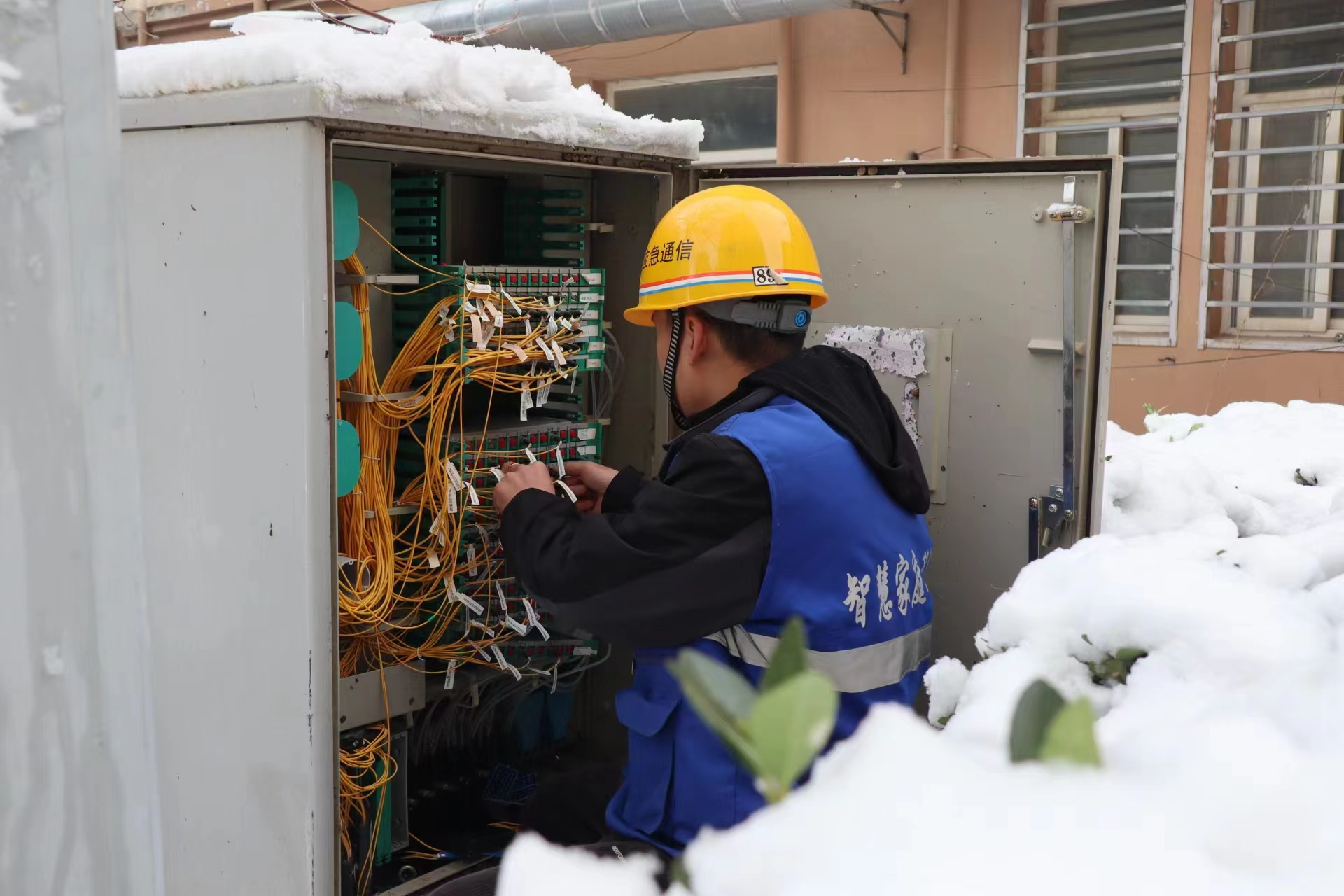 1月15日至16日 ,山西运城迎来2024年首次大范围雨雪天气。为避免恶劣天气造成通信网络基础设施受损,影响正常通信。运城移动的网络优化人员走上被大雪覆盖的街头,测试信号、上门维护,组织开展应急抢修工作,为群众提供服务。