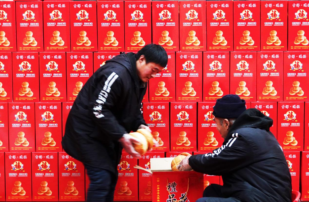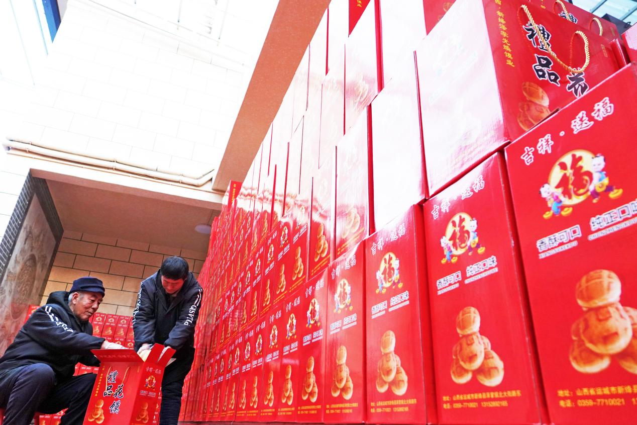 随着农历龙年春节临近,山西省运城市新绛县城乡居民和大小花馍店铺加紧赶制花馍,年味十足。