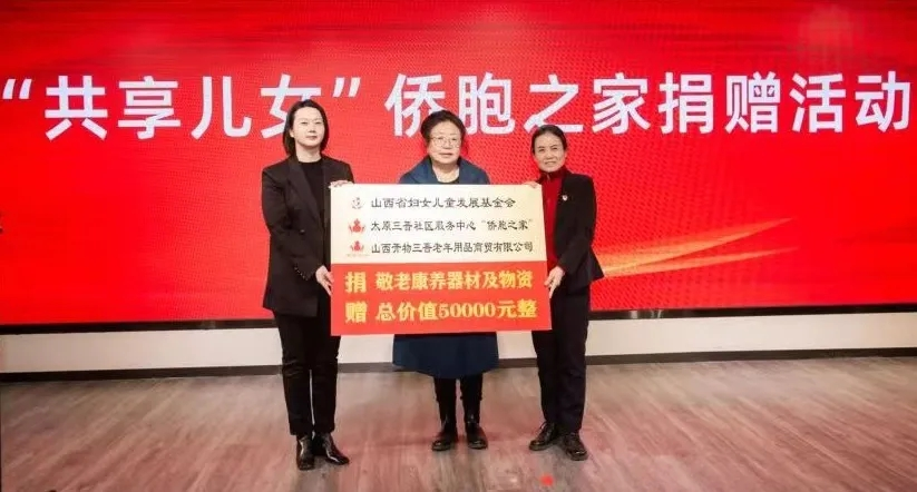 活动现场举行了“共享儿女”侨胞之家捐赠活动,太原三晋社区服务中心“侨胞之家”通过山西省妇女儿童发展基金会向“共享儿女”侨胞之家捐赠了价值5万元的敬老康养器材及物品,用于支援救助高龄、孤寡、残疾老年群体。