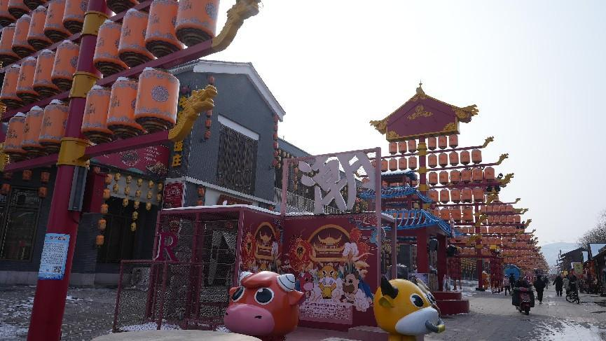 振兴小镇步行街洋溢着节日的喜庆氛围。