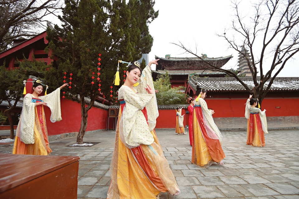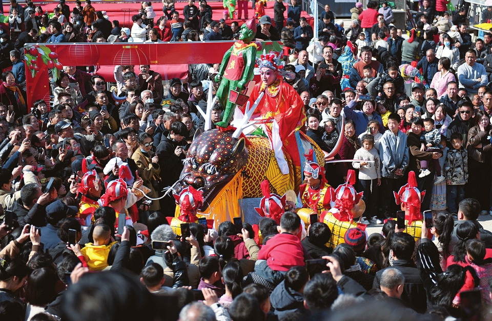 2月22日,永济市普救寺景区,各类民俗表演热闹非凡。本报记者阮洋摄