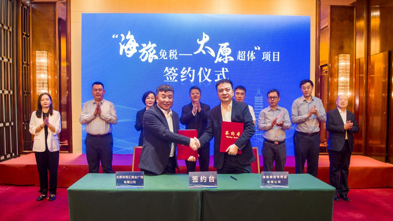 5月12日,太原服装城集团旗下太原双塔汇商业广场有限公司与海南旅投免税品有限公司在山西太原举行签约仪式,双方将携手打造“海旅免税——太原超体”,努力把这一项目打造成为太原市文旅商融合发展的商业新地标。
