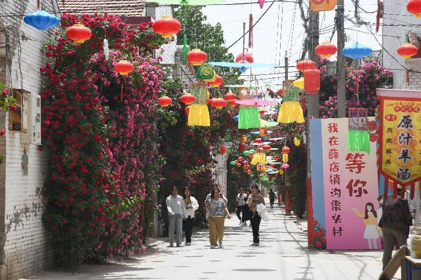5月13日,运城闻喜县沟渠头村藤蔓月季花观赏季暨中药材特色乡村游活动开幕。