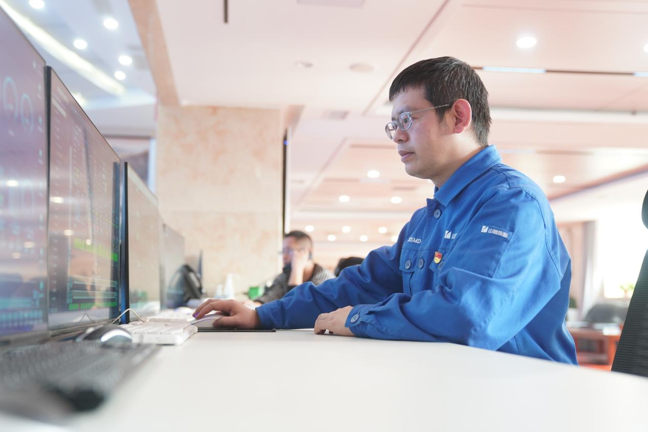 梁里鹏在调度室远程监控井下智能化综采工作面。