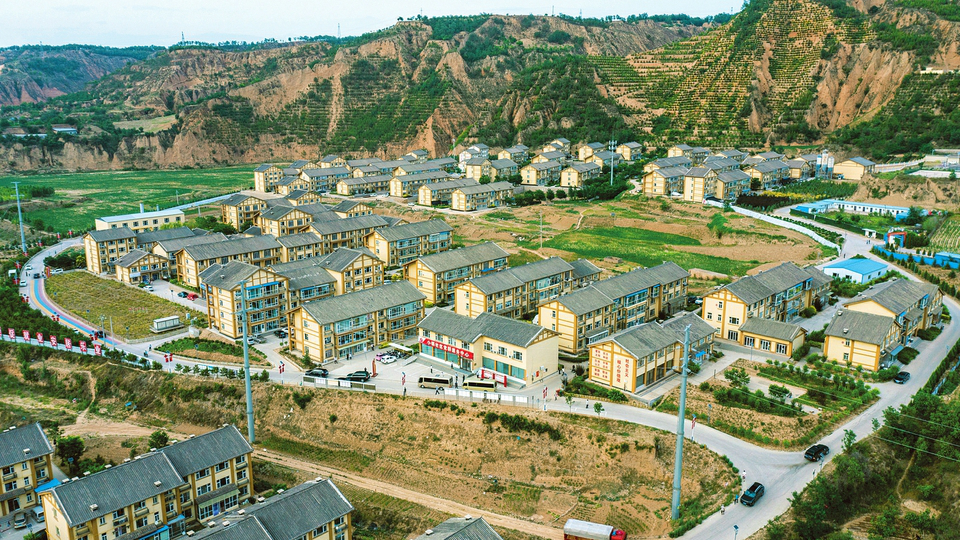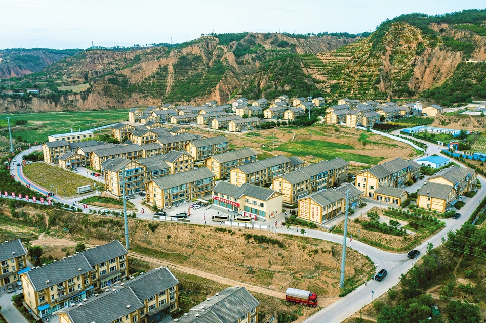 6月27日,俯瞰下的石楼县石楼小镇。这里是该县最大的移民集中安置点,展现了石楼乡村振兴新风貌。记者阮洋摄
