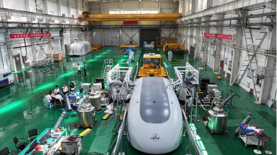 高速飞车项目融合了航空航天技术和地面轨道交通技术,目标是让轨道列车以每小时1000公里的速度行驶,实现轨道列车的超高速“近地飞行”。届时,北京到上海一个半小时左右即可抵达。(图片/赵文贵 视频/张喆超)
