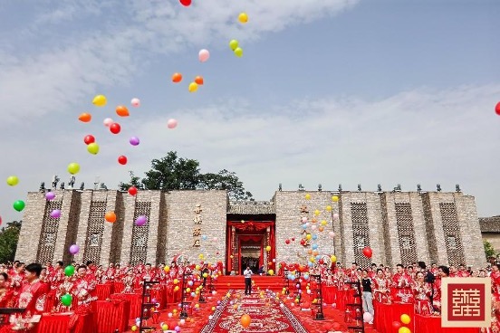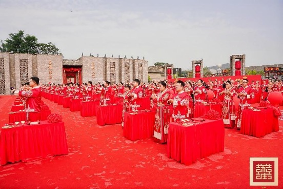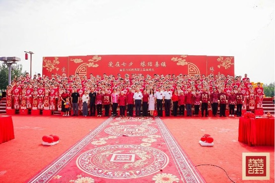 8月10日是中国民间传统节日七夕节。一场以“爱在七夕 缘结喜镇”为主题的集体婚礼在山西晋城高平市的中国历史文化名村喜镇苏庄举行。当日,山西省百对优秀职工在领导及亲人的见证下,身着传统中式婚服,携手踏上新的幸福旅程。
