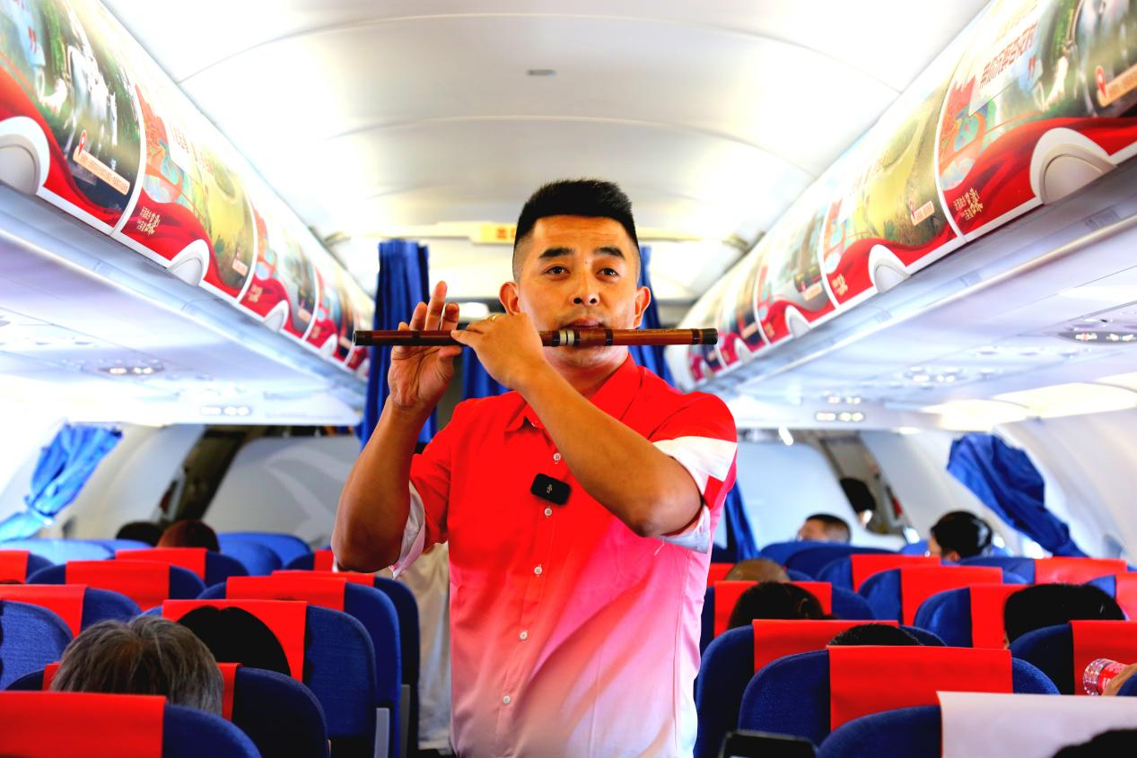 沉浸式主题航班布置、精彩表演、美味特色食品,让旅客大呼“过瘾”,也更好地了解了方山、感受方山文化。