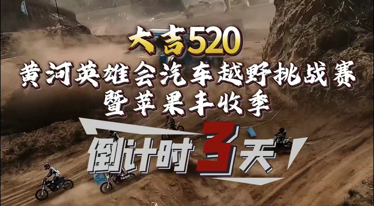 10月11日-15日,大吉520黄河英雄会汽车越野挑战赛暨苹果丰收季活动即将在临汾市大宁县开幕。30s,提前带你感受速度与激情。