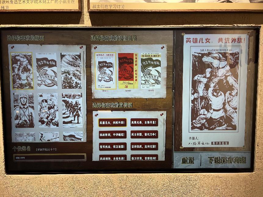 实时生成自主设计的抗战海报、阅读《地雷战》等电子书籍、坐在红色课堂点击桌面屏幕参与知识问答、扫描二维码在五角星上留言……兼具趣味性和互动性的展陈,令红色文化有了更多的“打开方式”。