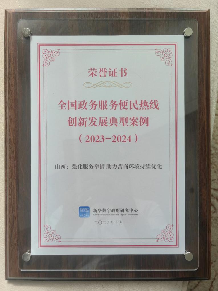 山西省12345政务服务便民热线报送的《强化服务举措助力营商环境持续优化》案例,获评全国典型案例。