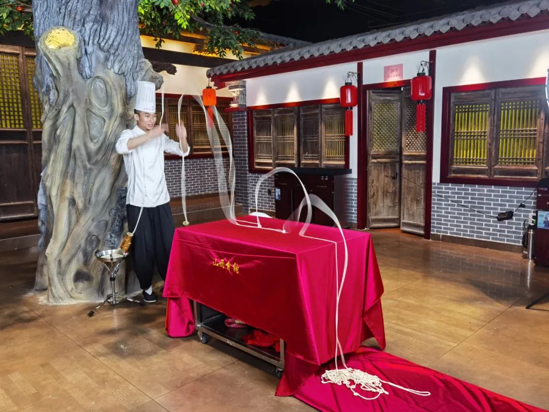 2022年8月31日,山西面食博物馆的高级面工闫锦超表演“舞面”